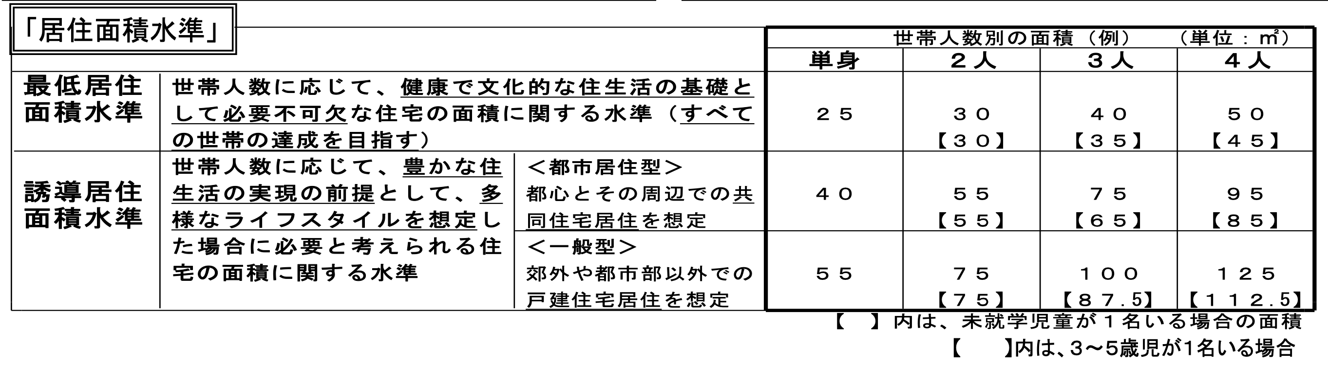 (参照:国土交通省 住生活基本計画における「水準」について)