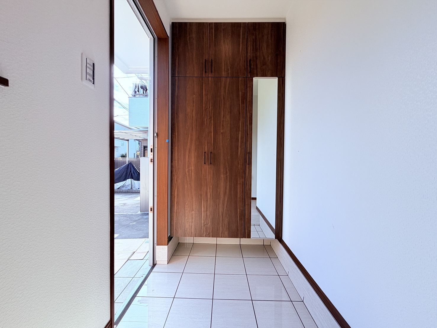 オープンでデザイン性の高いカースペースからはじまるキレイな新居で新生活を送れます。