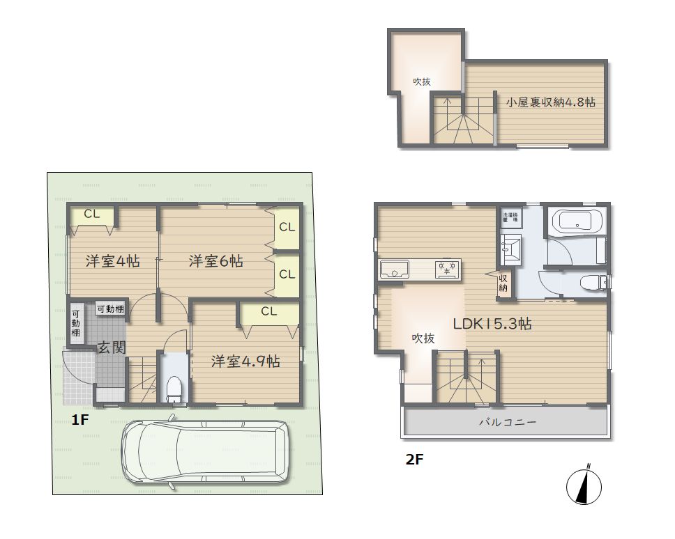 ◆各居室収納、リビングにも収納、そして小屋裏収納。充実の収納スペース