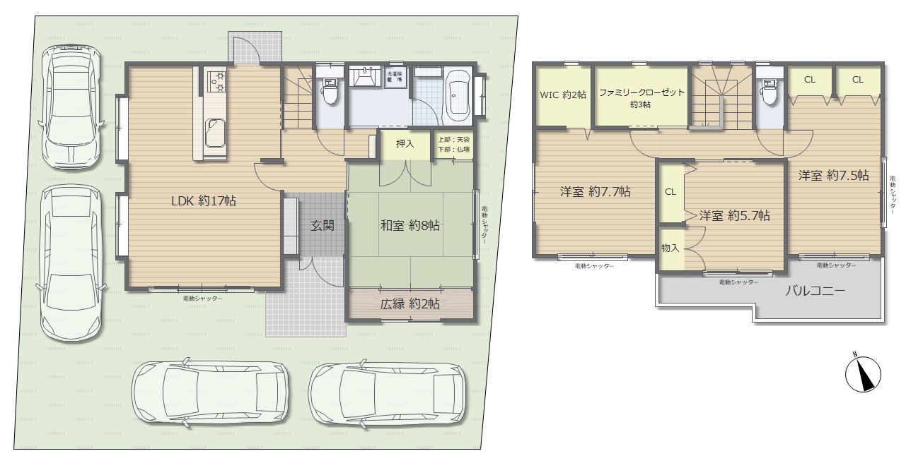 165m2のゆとりの敷地!駐車スペース4台分